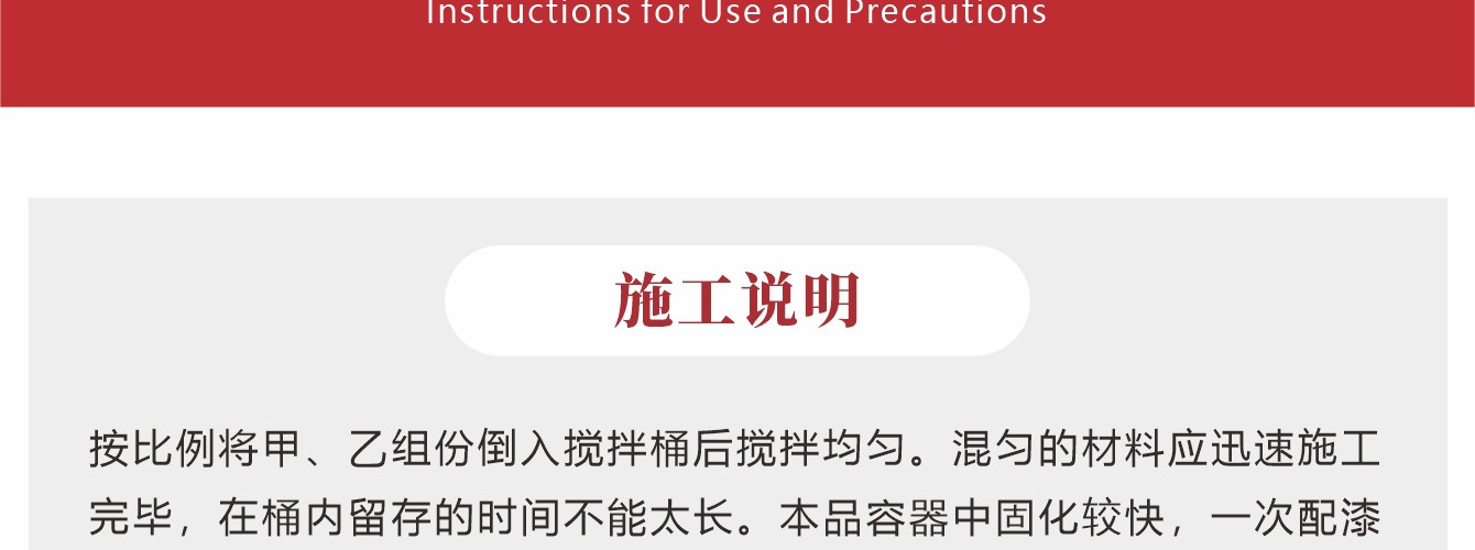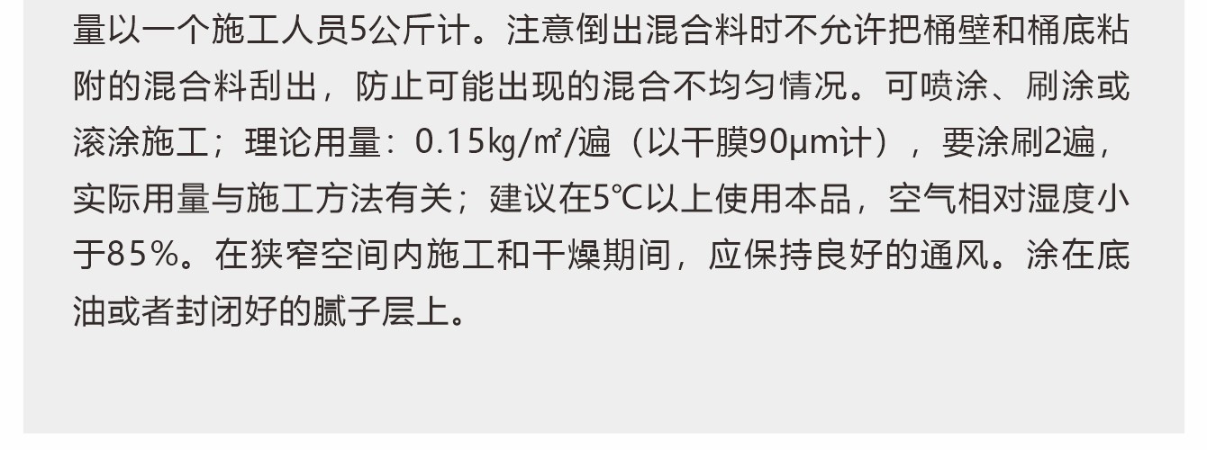 常溫固化雙組份環氧樹脂漆,層光滑、光亮、豐滿度好;溶劑含量低,大大改善施工環境。適用于輕工業廠房,寫字間、倉庫等地面的涂飾。