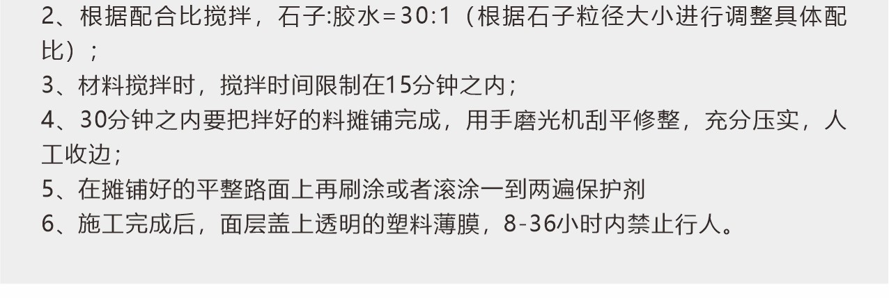 本品適用于透水地坪表面涂裝涂刷