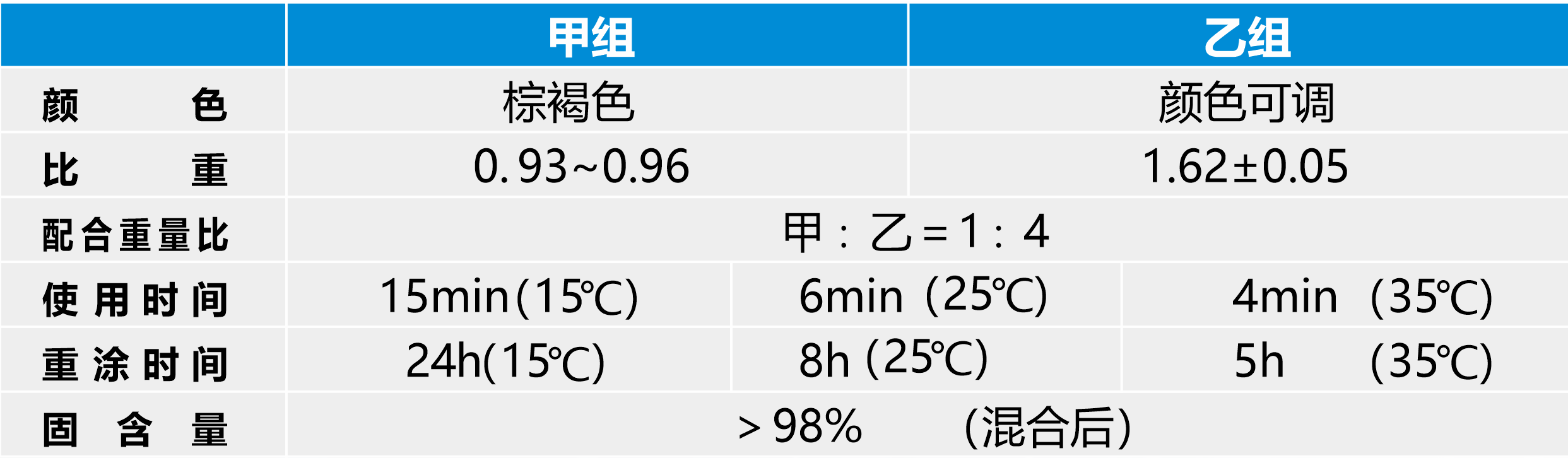混合:貯存過程中,乙組可能會出現輕微沉淀,混合前先將乙組充分攪拌均勻;按比例將甲、乙組份倒入攪拌桶后攪拌均勻,混合立即施工。