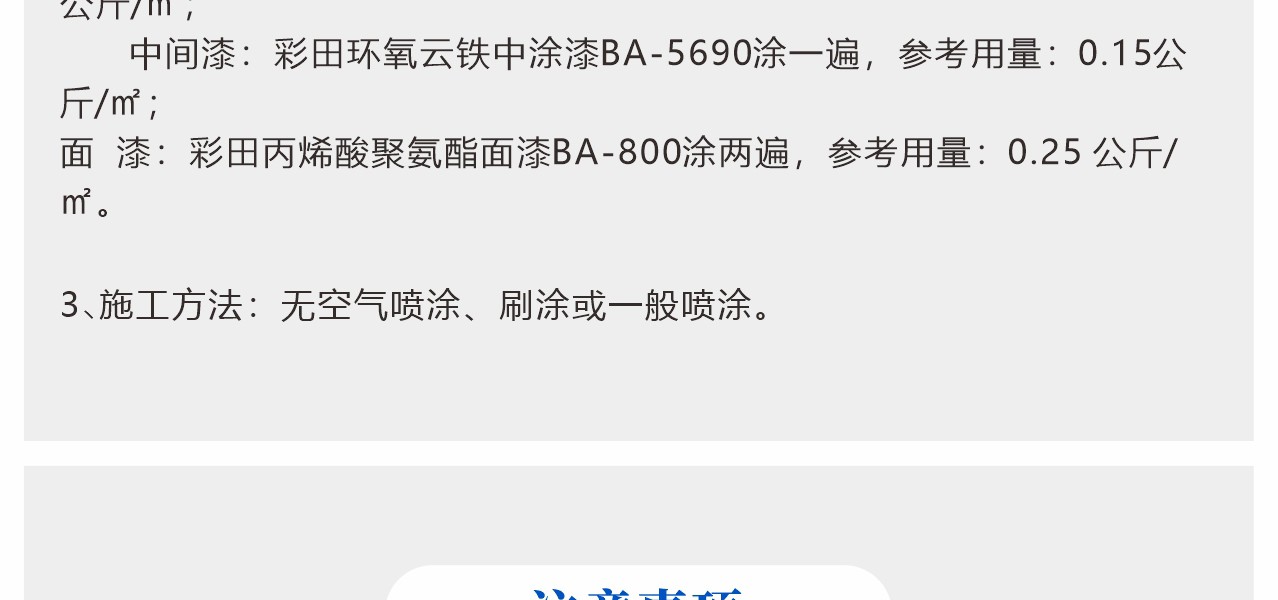 涂裝在中等至嚴(yán)重腐蝕環(huán)境中的鋼材表面。本品可被多種專門的油漆配套涂覆。