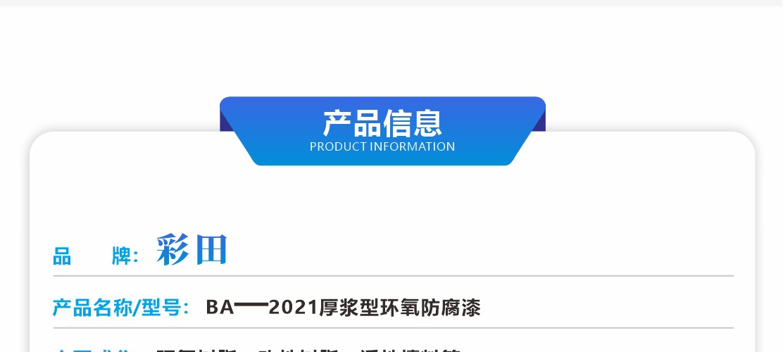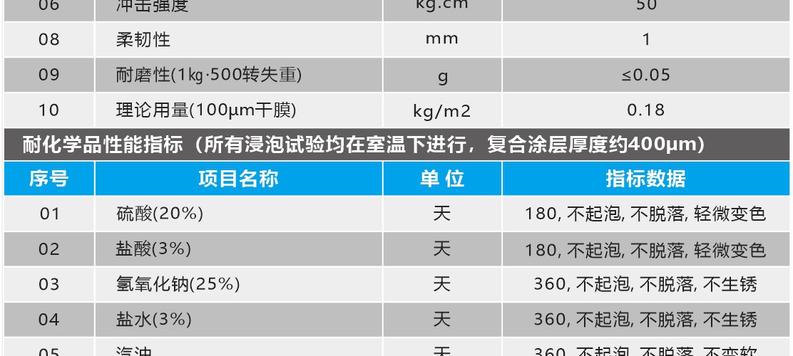 彩天化工 | 厚漿型環氧防腐涂料是由環氧樹脂、改性樹脂、活性填料、溶劑和耐酸堿型固化劑組成的厚漿型雙組份涂料。 產品特點:涂層粘附強度高、結構致密、抗沖擊性好,耐磨性優。在耐海水、酸、堿、鹽、土壤、原油、汽油及化工大氣方面有突出的耐腐蝕性能,是當今大型工程鋼結構和混凝土結構的理想長效防腐涂料。 適用范圍:適用于在嚴重腐蝕環境中的鋼結構和混凝土結構的長效保護涂層。特別適用于腐蝕嚴重的石油化工、冶金、造紙、污水、電力及精細化工等行業中的貯罐或容器的內壁涂裝。如:污水處理池、污油罐、化學品罐、海水罐、消防水池、原油罐、各種中間油品貯罐的內壁或存在酸、堿、鹽腐蝕的各類設備的表面涂裝。